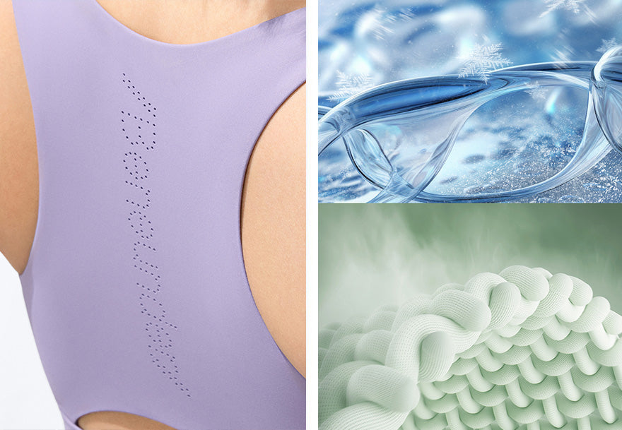 - Gradient chest ventilation + laser-cut back holes + open-back waist design create full-body airflow.