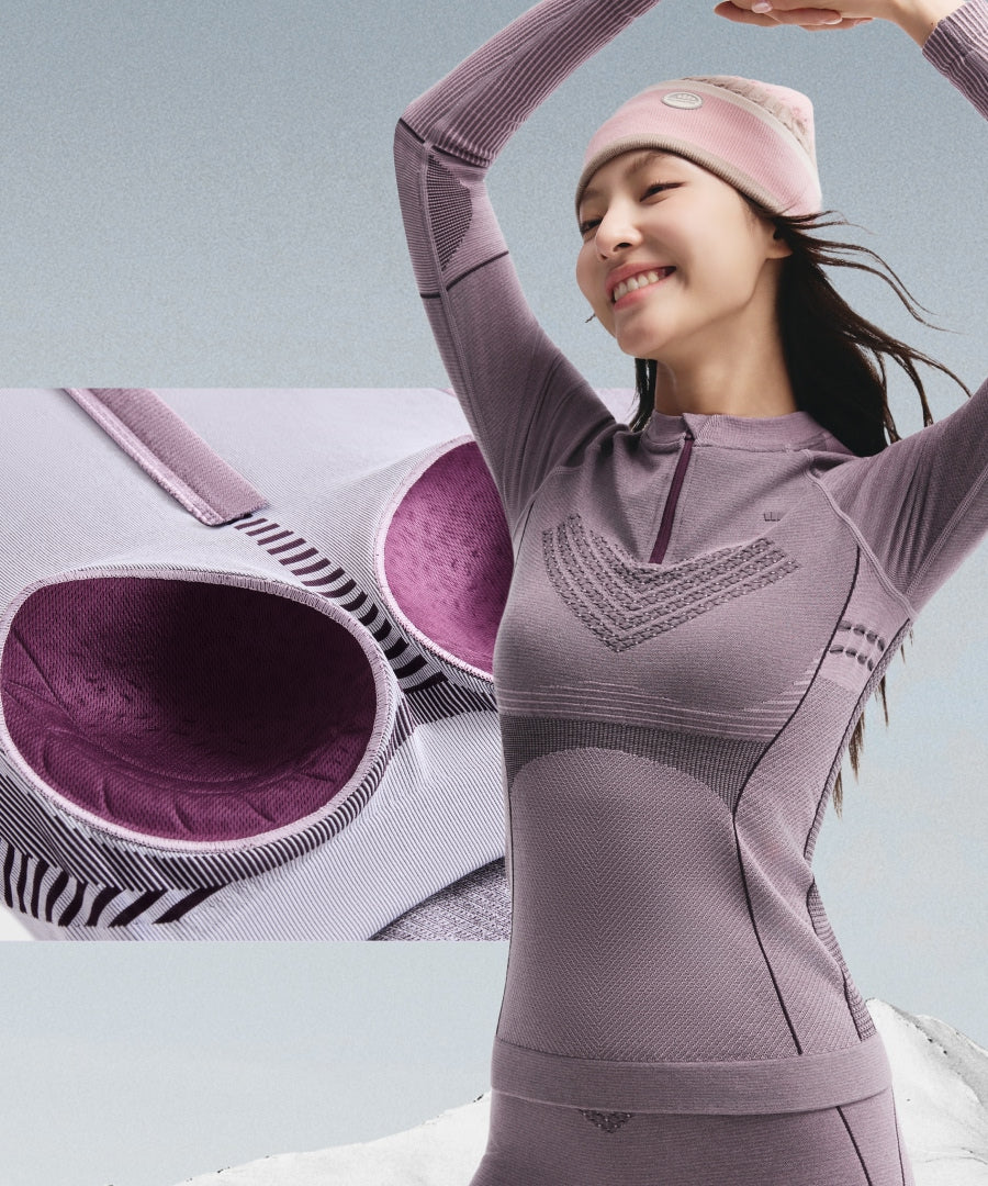 The HeatApex Core combines far-infrared heat storage with hollow-core fibers, boosting heat retention by 35% and providing up to +1.8°C warmth.