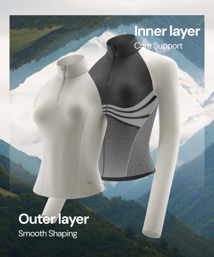 The inner layer stabilizes your core with firm stretch, while the outer layer smooths and shapes your silhouette for a naturally sleek look.