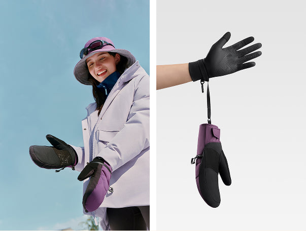 Meet the Beneunder ZeroShield 3-in-1 Snow Mittens — engineered for extreme cold down to -15°C. Featuring ASC Convertible Wear System for seamless switching between full mitten, five-finger, and half-glove modes, these gloves balance snowproof protection with fingertip flexibility. The SnowHipo Shield and TPU windproof membrane lock out icy wind and snow, while AirBloom 4.0 insulation ensures constant warmth with +2.3°C heat boost and ultra-low moisture regain of ≤0.5%. Built with FlexTouch stretch tech for full dexterity and >30,000-cycle abrasion resistance, they’re the ultimate snow gear for ski slopes, backcountry hikes, and urban winters alike.