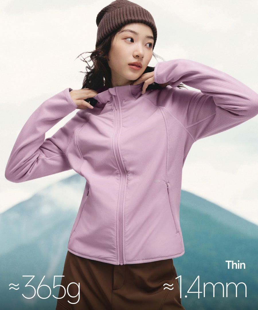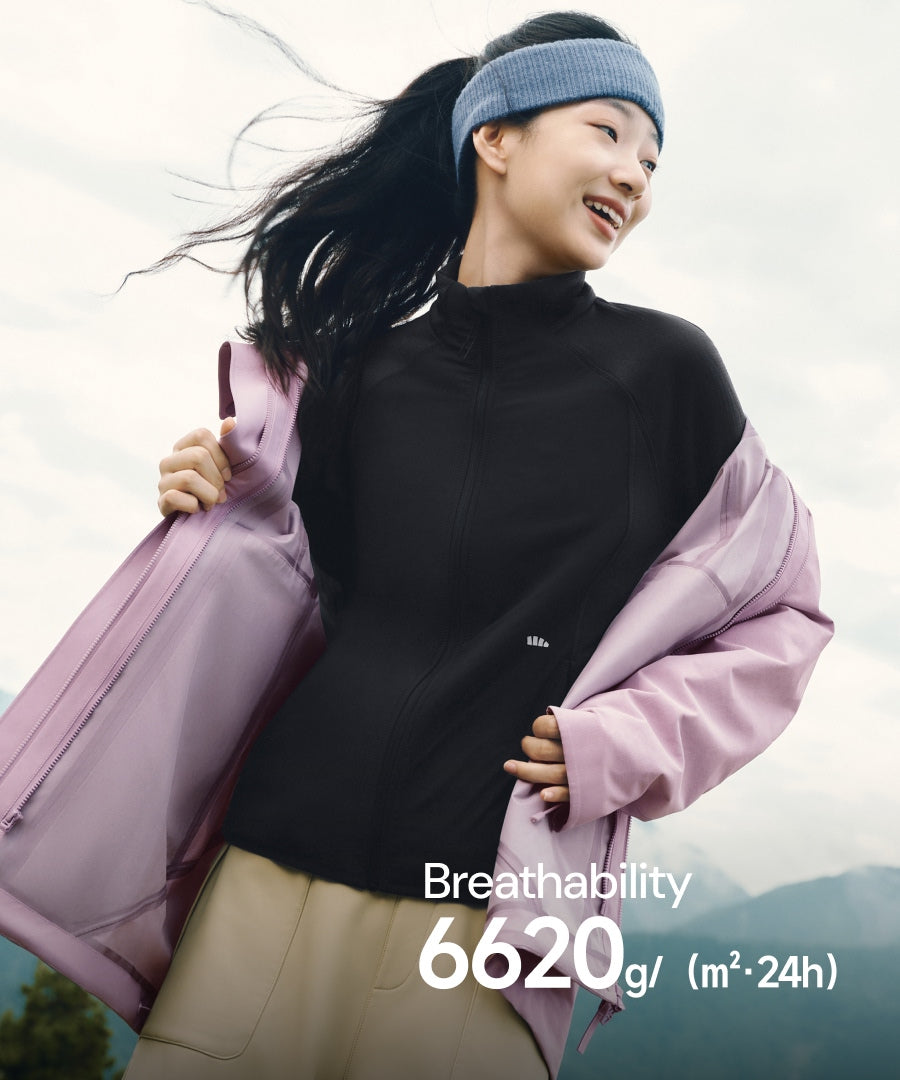 The Wind-Go tightly woven shell provides >4-level windproof protection and repels light rain with 33.7mm/s resistance, ensuring comfort in unpredictable weather.