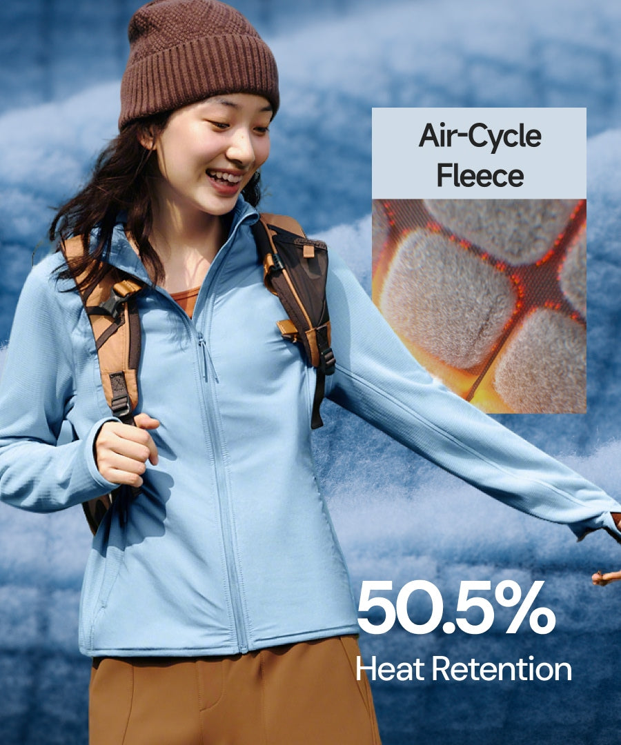 The fleece core traps heat with 50.5% retention, offering lasting warmth while staying breathable. Perfect for layering without bulk.