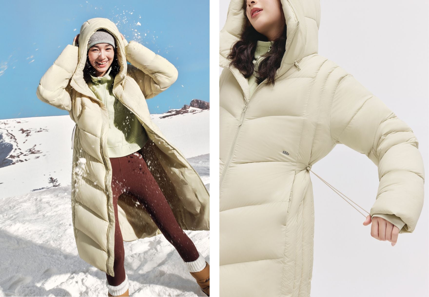 Designed for real winter life: a tall 11cm collar to shield the neck, adjustable waist for a fitted shape, and double storm cuffs to seal out cold winds. Every detail works to keep you warm and comfortable.
