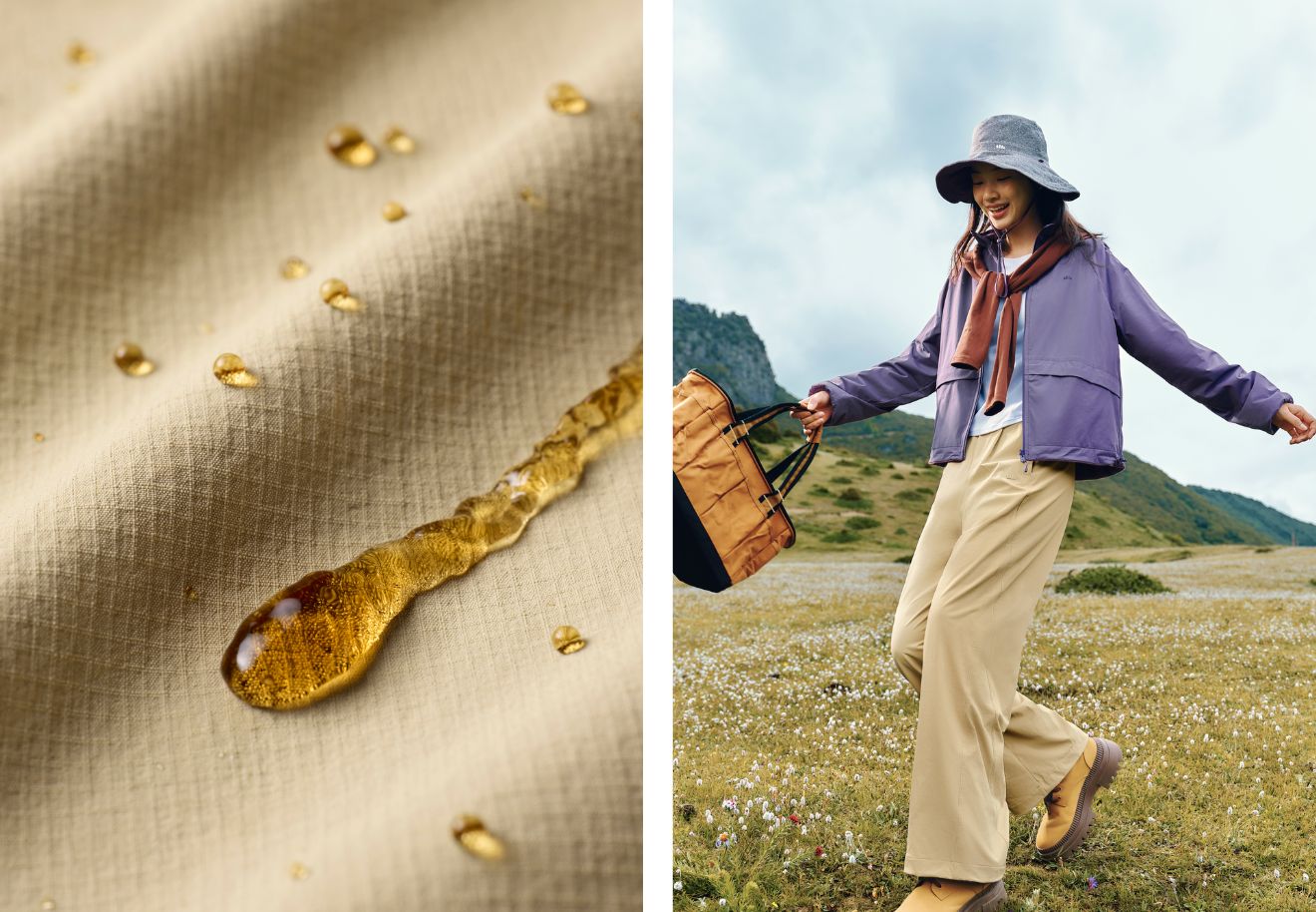 The fabric blocks wind and light rain, with water resistance rated at 4–5 and windproof at 17.5mm/s. Durable to 18,000+ rubs, it withstands rugged trails and daily wear with ease.