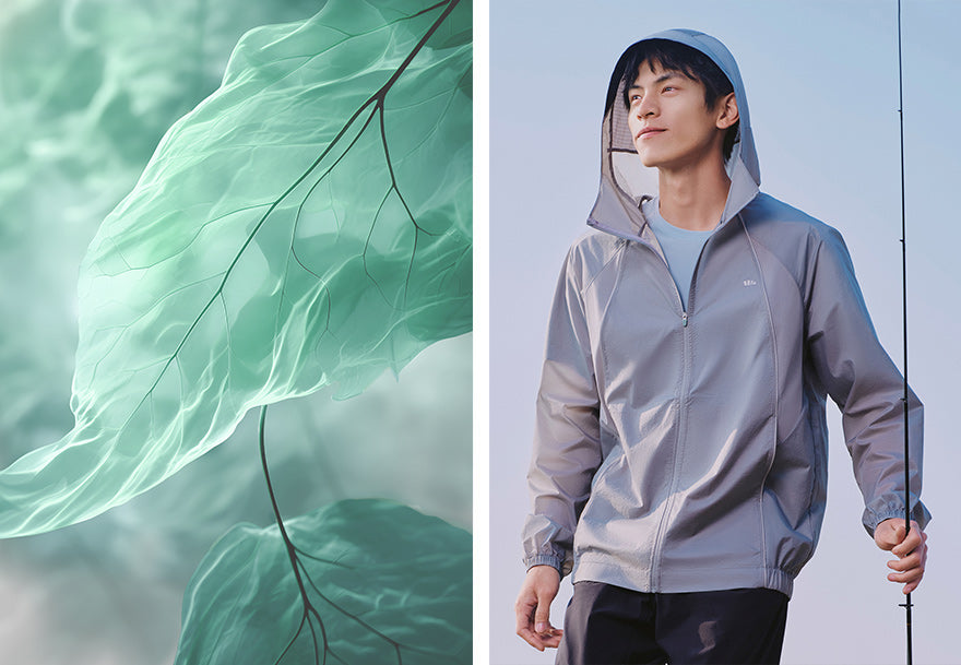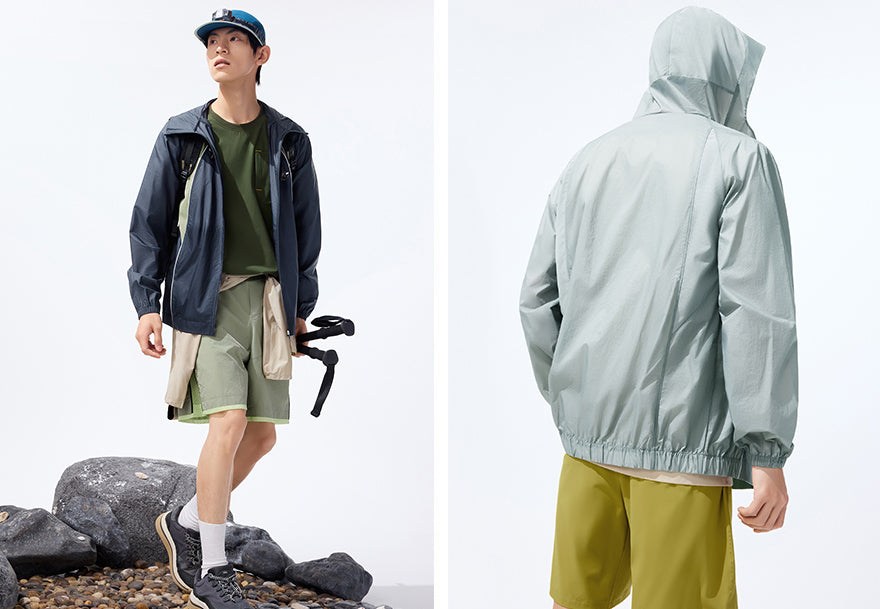 At only around 160g with an ultra-thin 0.09mm fabric, it feels incredibly light and easy to carry. The fabric’s micro-perforations and relaxed cut ensure excellent breathability, effectively wicking sweat and releasing heat for a cool, comfortable wear all day long.