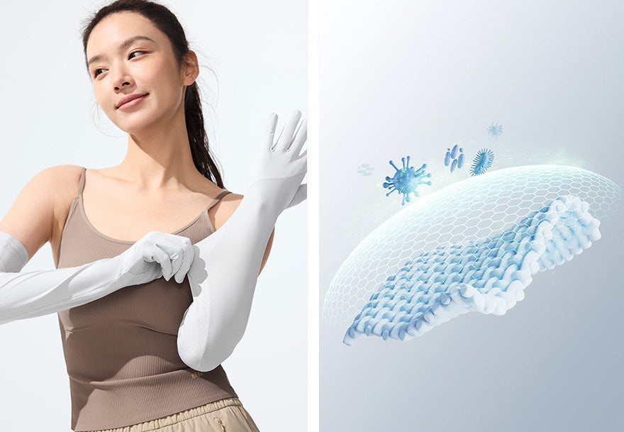 UPF150+ Patented Sun Protection—From Wrist to Upper Arm