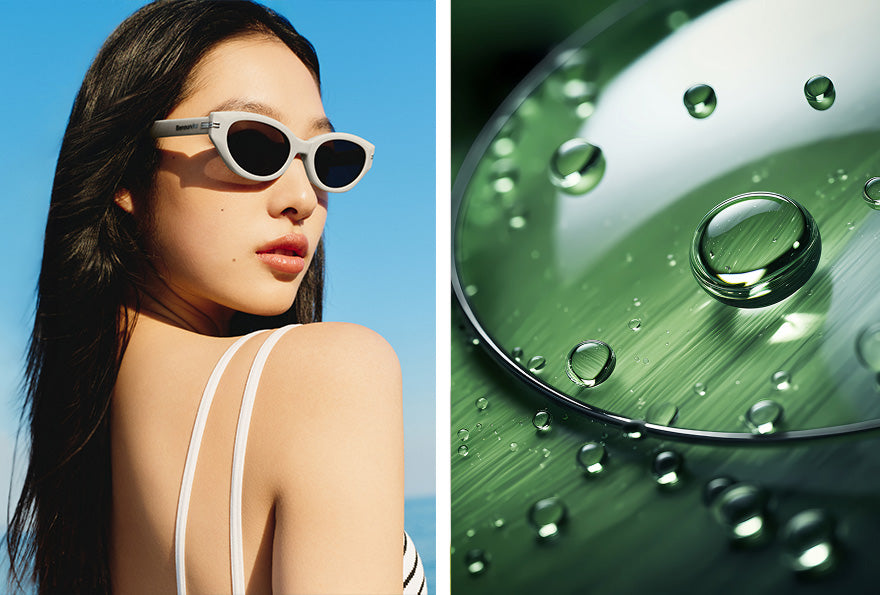 - Lotus leaf-inspired coating on both sides of the lenses provides multi-layer protection against water and oil. This makes fingerprints and dirt harder to leave behind.