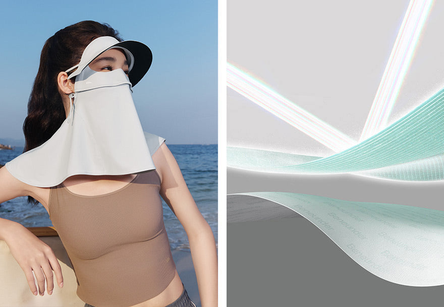 - UPF50+ yarn-based fabric blocks 99% of UV rays and maintains protection even after washing.