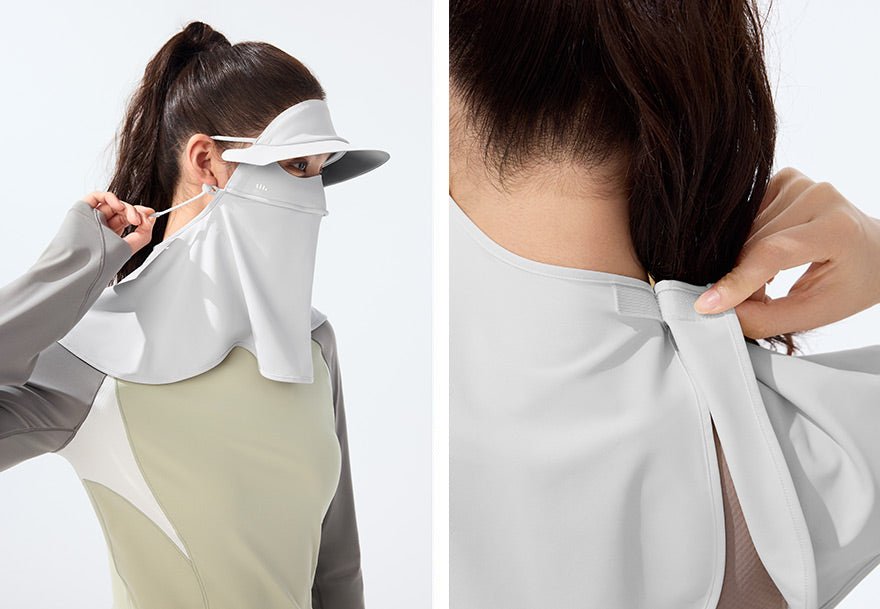 - 19cm extended shoulder panel shields your neck and upper back—even tank tops are covered.
