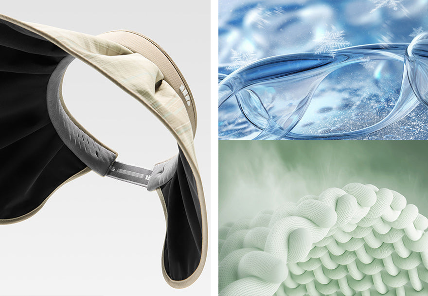 - Reflects both direct sunlight and ground glare while cooling skin by up to 15°C.