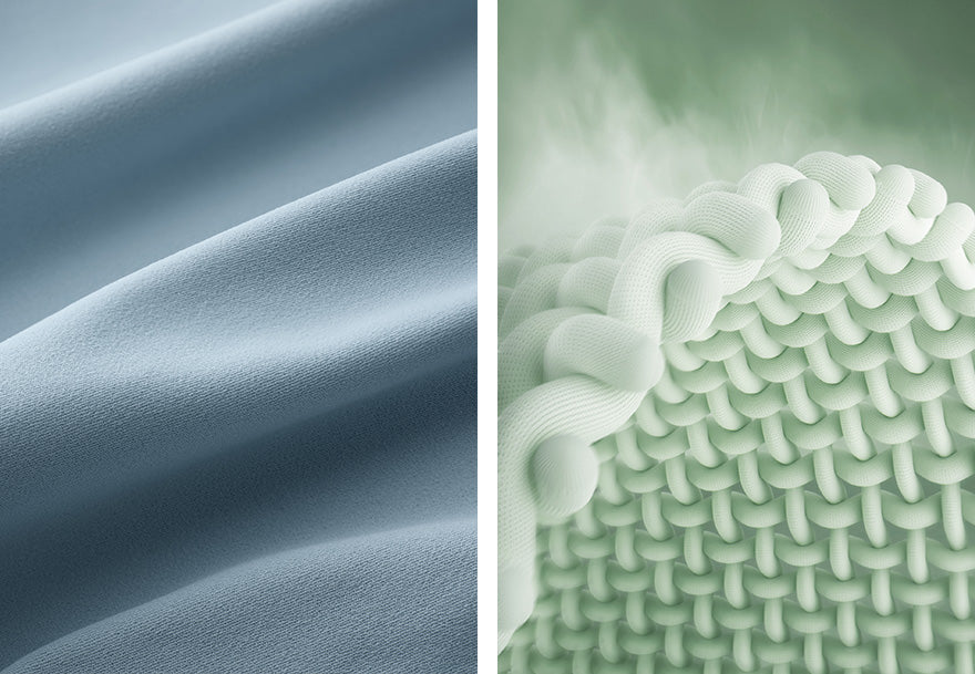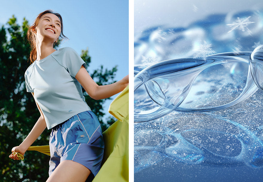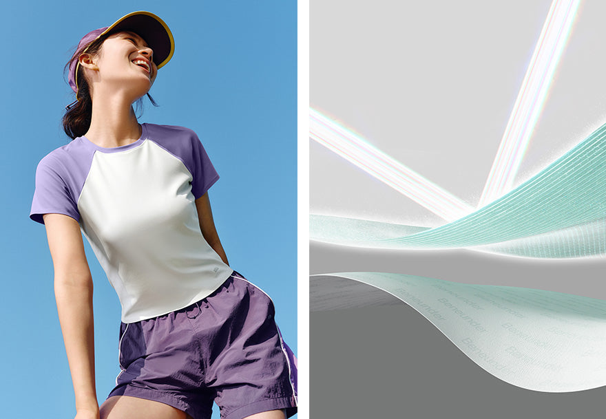 - TiO₂ sun-blocking particles are embedded in the yarn—blocks UV rays through sweat, wear, and wash.