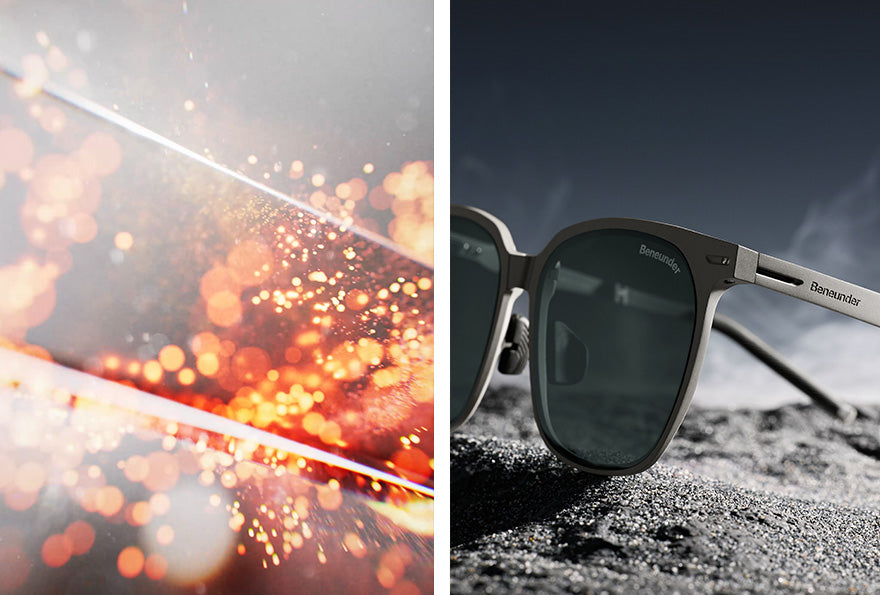 - Aerospace-grade aluminum-magnesium material combines the durability of spacecraft panels with the lightness of titanium. Featuring three key aerospace material benefits: impact-resistant lenses, oxidation resistance for long-lasting wear, and high strength that resists deformation. Built to endure over 5,000 open-close cycles.