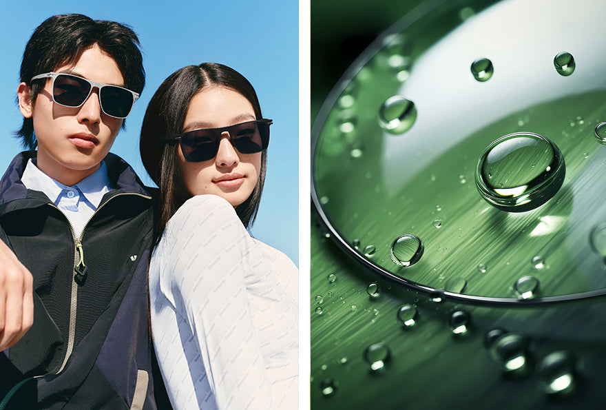 - Lotus leaf-inspired coating on both sides of the lenses provides multi-layer protection against water and oil. This makes fingerprints and dirt harder to leave behind.