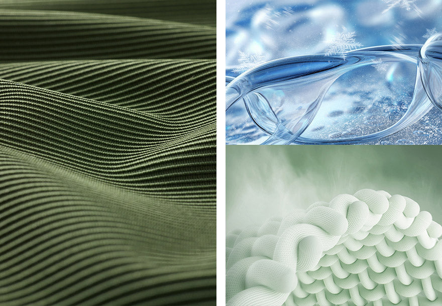 - 冷卻效果:此佈料內建的冷卻技術提供了增強的冷卻效果,與標準布料相比,可降低體熱高達 1.6 倍。
