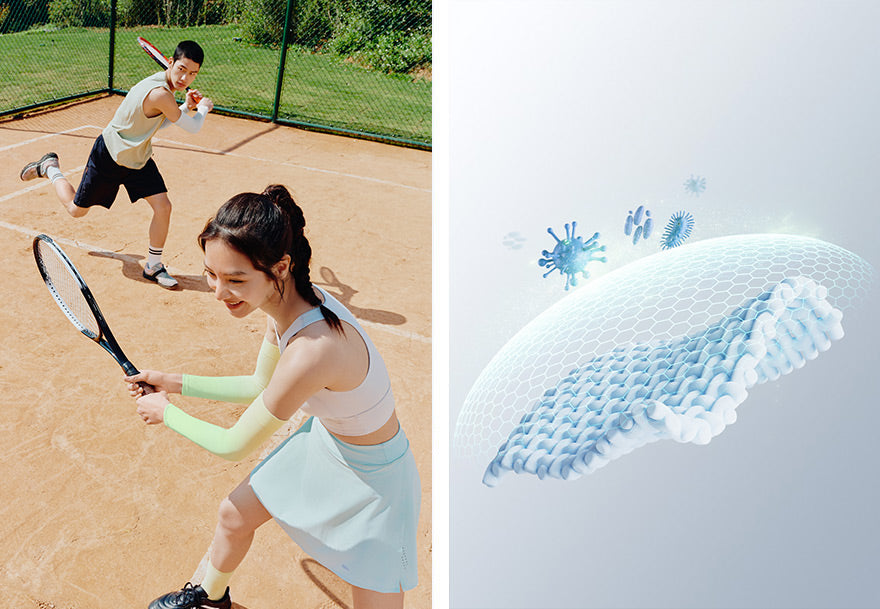 - 透氣性評級 ≥215mm/s,保持皮膚乾燥舒適,即使在陽光下。