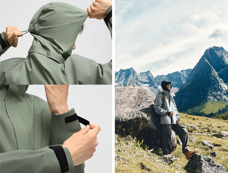 Triple-layer Jech LTShell resists wind, rain, snow, and stains with 20,000mm waterproofing and 12,100g breathability, keeping you dry and comfortable on every journey.
