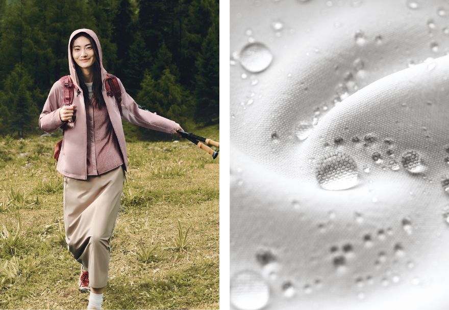 The Hydrel shield outer shell blocks wind at 30.6mm/s and repels rain with a 4–5 grade waterproof rating, ensuring you stay dry and protected even in sudden downpours.